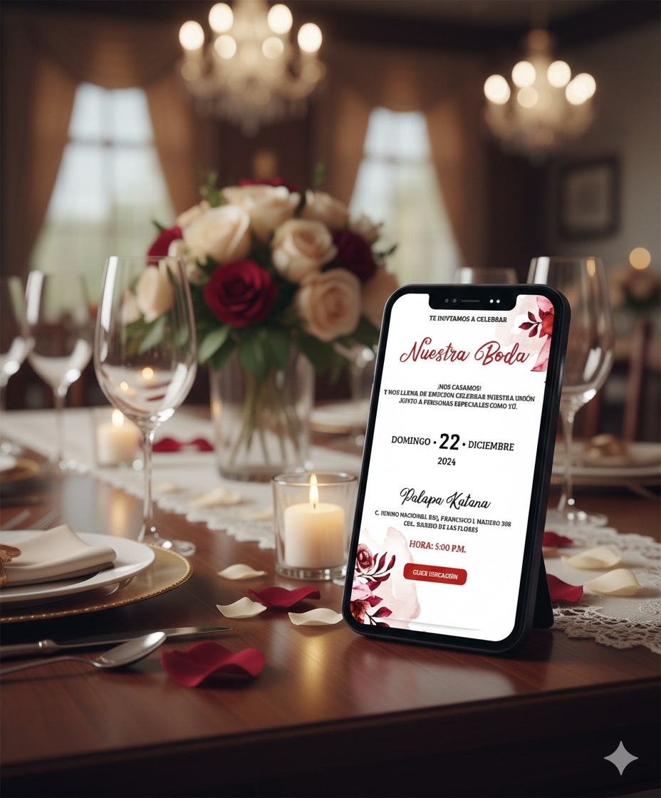 Se trata de una pagina web, en donde se incluye todos los datos de tu evento, fotos, videos, mapa, formulario de confirmación y toda la información que necesites compartir a tus invitados. Podrás enviarlas y ellos podrán verlas desde el celular o computadora con un sólo clic.