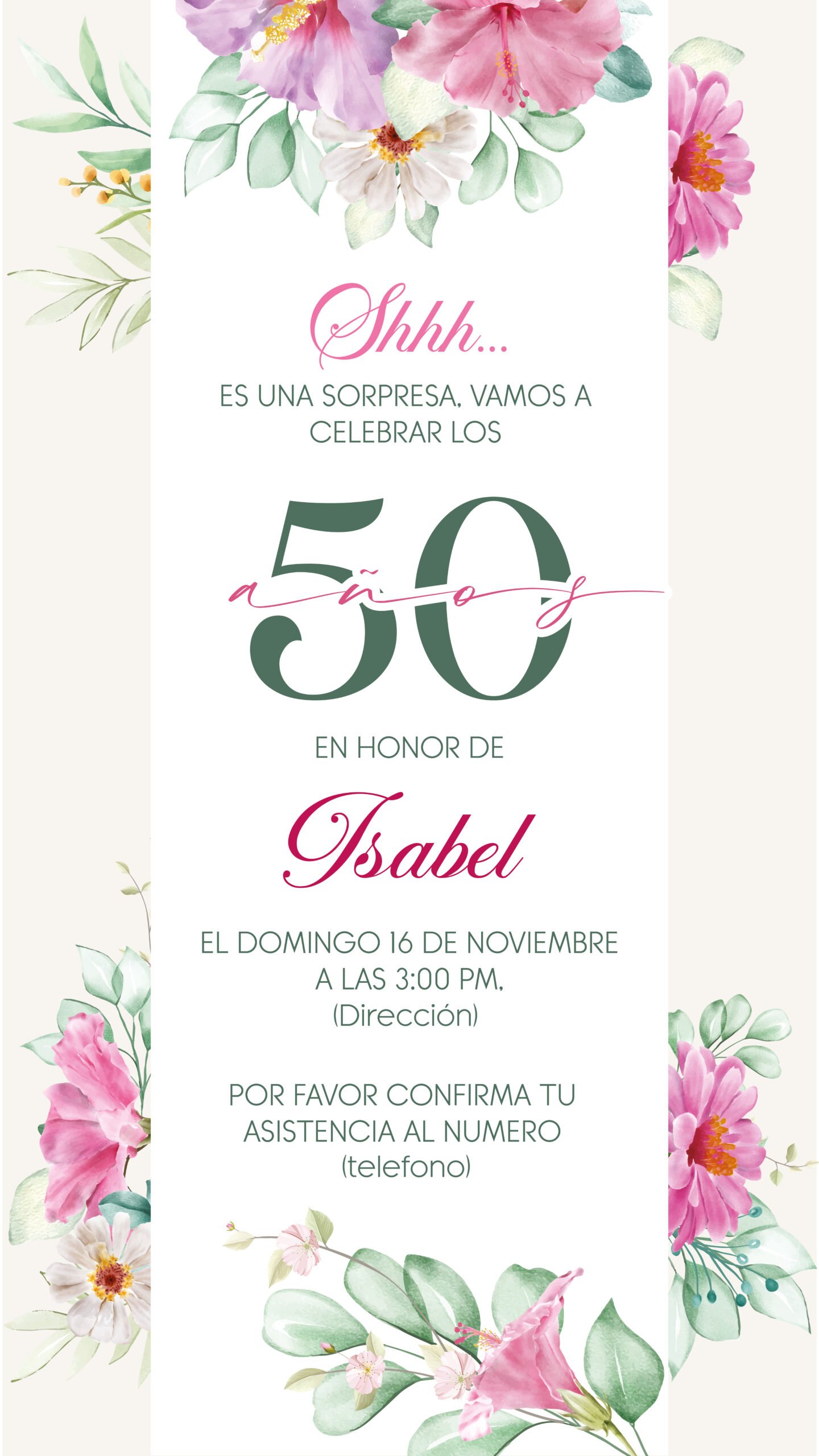 Una vez terminada y aprobado el diseño, te envío la imagen de la invitación física acompañado del link de la web para que puedas enviarla a tus invitados.
